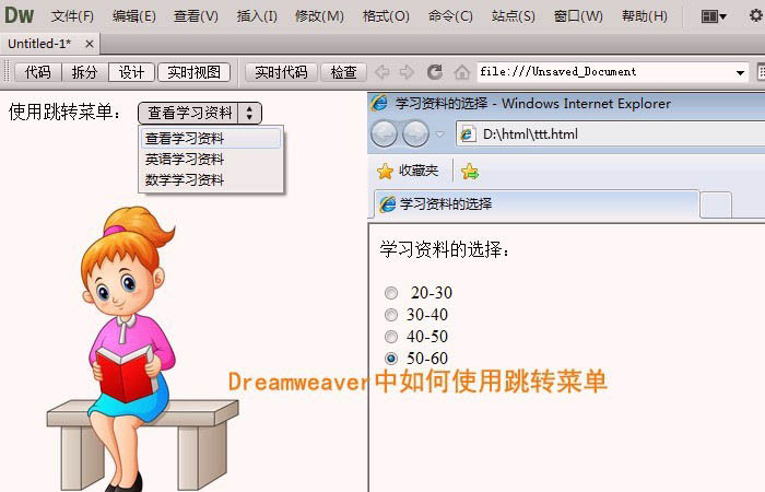 Dreamweaver怎么給網(wǎng)頁(yè)制作跳轉(zhuǎn)菜單?