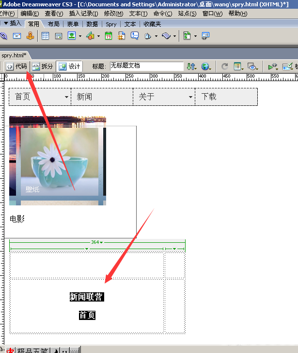 2、首先選擇新聞聯營首頁,在單擊代碼