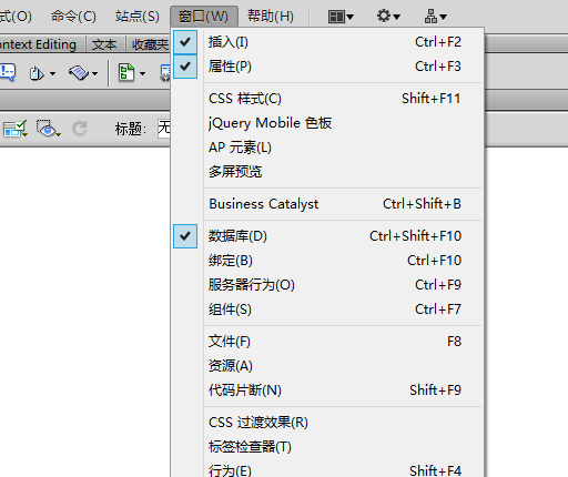 5、打開菜單欄的“窗口”,選擇“數據庫”。