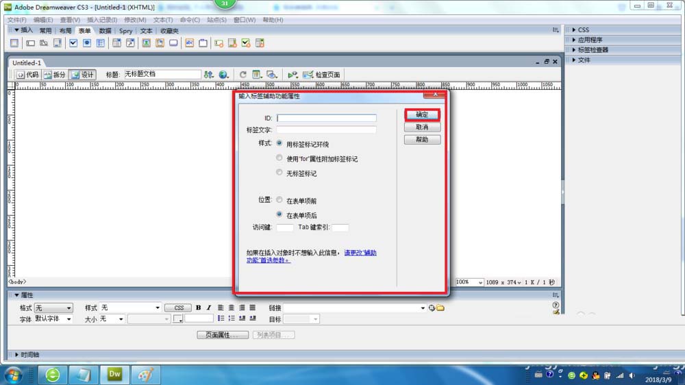 6、會彈出“輸入標簽鋪助功能屬性”窗口,點擊“確定”按鈕。