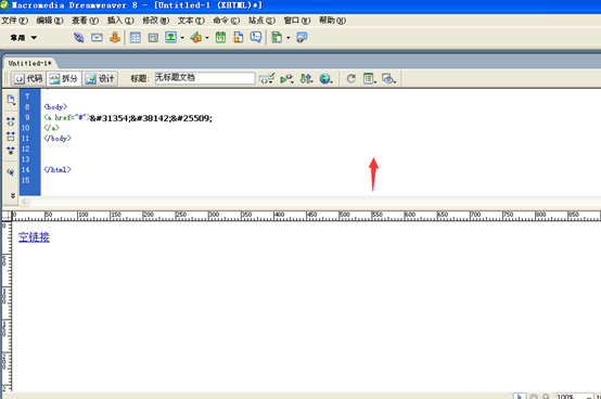 6、如果要取消或更改該空鏈接,只需在拆分視圖的上窗口中找到該空鏈接,進行刪除或者替換即可。