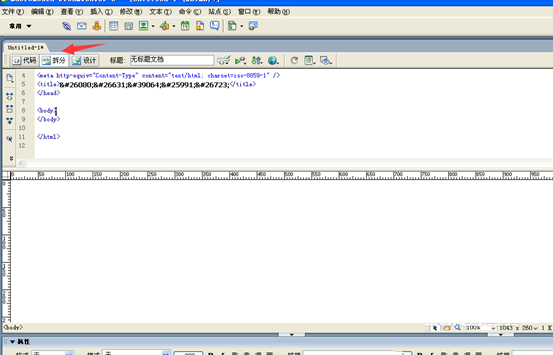 1、打開且創建一個Dreamweaver網頁編寫窗口,進入后點擊“拆分”。