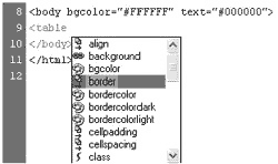 此外,dw mx還加入了代碼自動完成功能,會按照用戶寫的代碼片段自動給出提示,協助用戶提高編寫代碼的效率(如圖 10)。