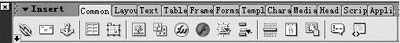 (如圖6)在dw mx界面的上方,是“insert”選項,也就是以前的“object”選項,但它的分類已經比dw 4要全面得多,也作了很多改進,比如“media”選項卡中的“flash button”和“flash text”已經開始支持中文。 尤其值得一提的是它的“application”選項卡,對于dw 4的用戶來說它比較生疏,但對于使用過dw ultra dev的人就會發現,它與dw ultra dev的live很相似。它的作用有:建立記錄集;選擇綁定記錄的表格后重復區域;將某個記錄集中所有字段一次綁定在表格中,可以定制重復記錄數和表格的一些參數;將記錄集中的某個字段綁定到頁面;翻頁鏈接導航;當前記錄數;一次生成顯示頁和細節頁;增加記錄行為;修改記錄行為。這些,都是我們進行網頁后臺數據庫設計的利器。 properties項|||
