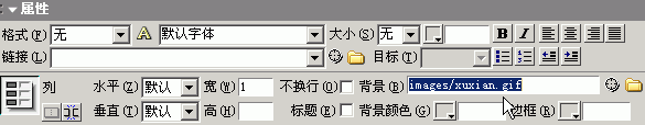 6.把虛線圖像拖到到屬性面板上的單元格背景中。|||
