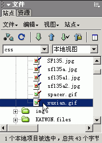 5.現在需要把虛線圖像設置為單元格背景。在“站點”面板中,選擇虛線圖像。