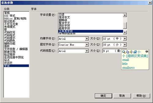 在dw mx 2004中修改字體的參數(shù)。唉~!果然是有問(wèn)題,怎么會(huì)是“土耳其字符”?