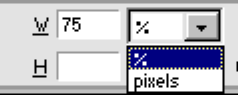 你可能已經注重到了,在表格的高寬設定選擇上提供了兩種不同的類型,百分比和像素。其中百分比的使用將會產生前面說到的那個毛病,將其全部更正為pixels單位的實際大小就可以了。