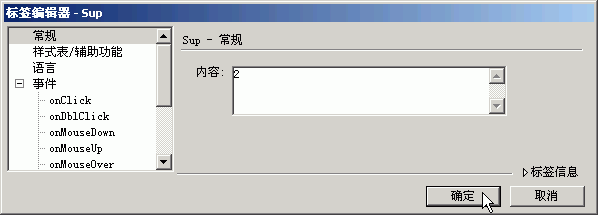 3.在“標簽選擇器”中選擇sup標簽,單擊“插入”按鈕。