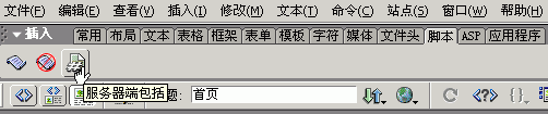 2.打開“插入”欄中的“腳本”選項卡,單擊“服務(wù)器端包括”圖標(biāo)。