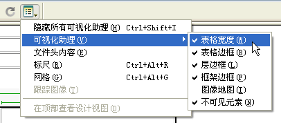 點擊工具欄上的視圖(view option)圖標,從下拉菜單中選擇“可視化助理”,把“表格寬度”前面的鉤去掉。