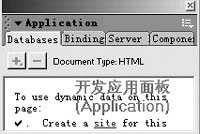(如圖5)這里包括“Datebases”、“Bindings”、“Server Behaviors”、“Components”4個選項卡。它們的作用主要是幫助設計者完成網頁后臺的數據庫應用程序。
