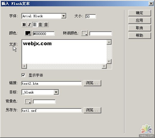 ( 2 )插入 Flash 文本并輸入參數,如圖3、4所示。