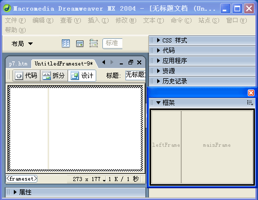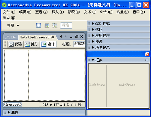 Dreamweaver MX 2004生成一個空白的框架頁面,如下圖: