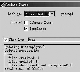 打開“Templates”子選項,雙擊關聯網頁的模板,這時候模板進入了可編輯狀態,黃色區域消失,改變了模板的內容后,保存時就會出現一個提示對話框:“下列網頁使用了當前模板,是否進行更新?”(如圖2)單擊“Update”,此時,網站中所有基于模板創建的關聯網頁都將得到更新(如圖3)。