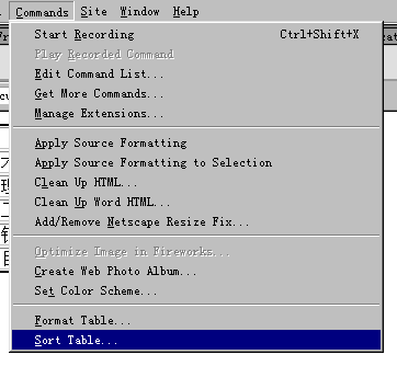3、(1)雖然表格是做出來了,不過有時我們需要對表格中的數據進行排序,這DW當然也想到了,先選中表格,然后選擇菜單欄commands/sort table。