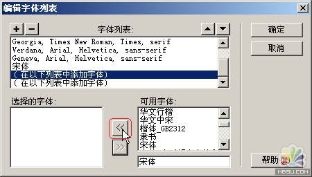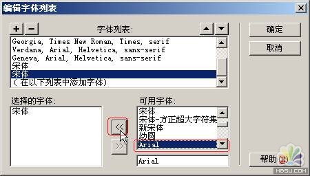 4.繼續(xù)添加字體,選擇一種字體,如Arial,按箭頭按鈕添加。