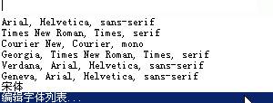 說明:一個(gè)字體列表中有多種字體,比如“方正,宋體,黑體,華文中宋”,訪問者電腦從最開頭的方正字體開始執(zhí)行,假如沒有對(duì)應(yīng)的方正字體,就執(zhí)行宋體,沒有宋體,就執(zhí)行黑體,假如列表中的字體都沒有,就用系統(tǒng)默認(rèn)的字體替代。