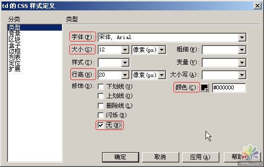 大小:設(shè)置字體大小,好看的中文字大小有12象素(px)和9點(diǎn)數(shù)(pt)兩種,兩者效果差不多。