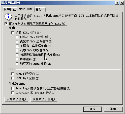 microsoft office frontpage 2003 中的遠程網站視圖可以幫助您將整個網站和單獨的文件和文件夾發布到任何位置:擴展的 web 服務器、支持文件傳輸協議 (ftp) 或基于 web 的分布式創作和版本控制 (webdav) 的 web 服務器、或文件系統中的某個位置。