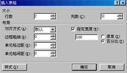 怎么樣在網頁中使用表格呢?我們點擊frontpage2000控制窗菜單欄的“表格→插入→表格”(如圖9),在彈出的窗口中選擇要插入表格的要求(如圖10)。選擇好之后按確定,就在你的網頁上插了表格了。