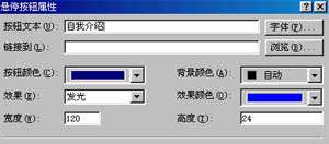 我們在“懸停按紐屬性”的窗口中設置一下。在“按紐文本”中填寫想要在按紐上顯示的文字,還給以給那個按紐做連接。接下來你可以設置按紐顏色和效果。其中“按紐顏色”指的是這個按紐在沒有將鼠標移上去的時候的顏色,而“效果顏色”就是指鼠標移上去的時候的顏色。我們還可以設置這個按紐的寬度,高度等等。設置好按確定就行了。