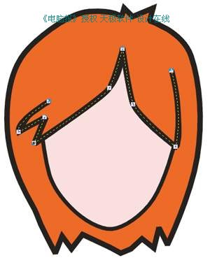 女孩的輪廓大致可以分為兩個部分,即頭發部分和面部部分。先用coreldraw左側工具欄中的“貝茲曲線工具”繪制出頭發的輪廓線。繪制完畢以后在工具欄中選擇“造型工具”,對曲線進行調節。然后選中輪廓線,在色盤中單擊橘紅色,為輪廓進行顏色的填充。