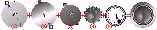 其實,利用二維圖形軟件(這里專指coreldraw這一類矢量繪圖工具)制作三維效果(其實是模擬三維效果),有一些比較通用的規律:任何看起來復雜的物體,均可以分解成普通的幾何形體,然后利用各個不同類型和方向的過度顏色來表現出物體表面的材質和光照效果;而這些幾何形體的疊加而至再組合,就是物體原貌了的再現了。