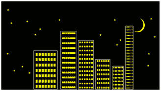 4 調整月亮、星星的大小,復制一些星星,散落在天空各處,而月亮則在樓房附近。