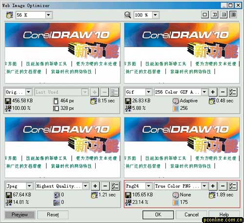 7. 單擊對話框左下角的preview(預(yù)覽)按鈕,可以在窗口中看到頁面圖像優(yōu)化后的效果圖。