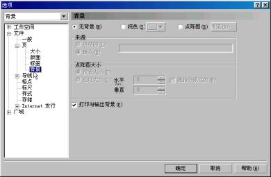 步驟一、選擇“版面”下拉菜單的“頁面設定”命令,進入設置頁面的“選項”對話框,如圖20所示。