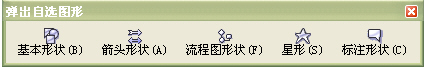 好了,不妨先繪制一些有趣的圖形試試看。我們先從頭開始,在預設形狀工具條中單擊"基本形狀"按鈕,然后單擊屬性欄上"自選圖形"按鈕,可以看到它提供了共15種自選圖形,如圖2。我們就來做一些例子研究一下吧。
