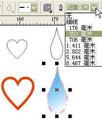 的就不再一一舉例,可以自己嘗試。順便要說的是,從屬性欄上可以方便的改變其輪廓線的線型和線寬。如圖7。