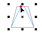 相對以前的版本,標準的梯形的繪制就這么簡單!與先前不同的是,保持選中狀態的梯形除了8個控制手柄外,還多了一個紅色的菱形控制點(暫且這么稱呼吧)。來試試它的用法:光標移動到控制點上(光標變成圖3 ),拖動以改變梯形形狀,最終就會變成三角形或者矩形,或者各種梯形。如圖4