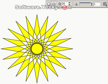 點擊多邊形工具,按在工具欄上的“星形”按鈕,并設“多邊形的點數”為20,及設定一個20個角的星形。設定“多邊形的銳度”,把它的滾動條拖動到最右邊。按“ctrl”鍵,按住鼠標左鍵,繪出一個星形(如圖12)。