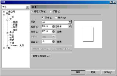 步驟一、選擇“版面”下拉菜單的“頁面設定”命令,進入設置頁面的“選項”對話框,如圖20所示。