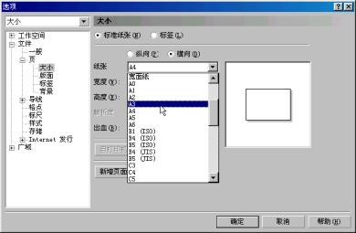 圖21 在“紙張”下拉菜單中選擇a3紙