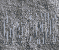 接下來,點取文字工具,在畫面中任意一處點擊鼠標,輸入文字“coreldraw9”(美術字文本),然后在屬性條中進行字體(因較粗的字體力度較強,更能夠體現浮雕感覺,所以建議使用粗體字)、大小、位置的設置,取消文字的邊框。這時得到如圖2的效果。