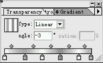 最后就將磁盤的細節繪制上去。比如說磁盤的寫保護,磁盤上的凹凸圖案,標簽等等。在繪制凹凸圖形的時候可以用灰色的線畫出。然后將磁盤上的高光點綴上去。這兒的高光可以使用一個白色的線點綴在磁盤的受光的邊緣部分。點綴了這個高光以后我們就可以看到磁盤更具立體感了。剛才繪制金屬板使用了漸變填充。浮動面板調節的參數如下圖