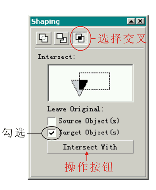 在shaping(造型)面板選擇intersect(交叉)選項,設置其狀態(如圖12),
