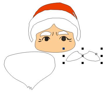 (2)分別繪出圣誕老人的臉龐、眉毛、眼睛和胡子,具體造型如圖02所示,同時將各個部位進(jìn)行組合,并調(diào)整每個部位的層次,使之如圖03所示。