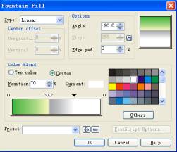 第五步:在工具箱里選擇橢圓形工具或按"f7",接著按"ctrl"鍵不放畫圓,繪制出一個正圓形,然后利用"漸變填充工具" ,在對話框中,設置如下圖的直線漸變層色彩效果。