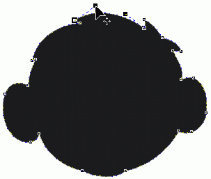 10.再選擇“形狀工具”,在需要變?yōu)榍€的線段中間點擊一下,然后在“屬性欄”的“編輯曲線、多邊形和封套”中單擊一下“轉(zhuǎn)換直線為曲線”,這時在這條線段上就會出線兩個調(diào)整節(jié)點,用鼠標(biāo)拖動這條線段或是拖動調(diào)整節(jié)點則可以對這條線段進(jìn)行調(diào)整,最后調(diào)整出一個小猴頭的大致形狀,并填充黑色做底。