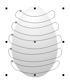 好,至此蛋的形狀完成,下面我們來“削皮”,使用“貝塞爾工具”在圖中繪制出如圖所示的圖形