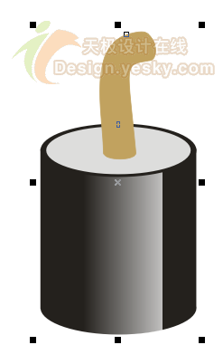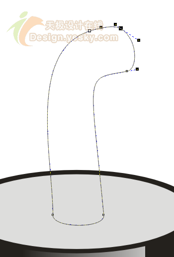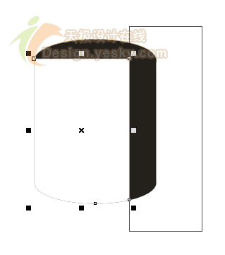 剛才在畫布外面畫的圓形已經沒用了,可以按 "delete"刪除。 對于陰影,我們使用挑選工具再次變形,如圖所示: