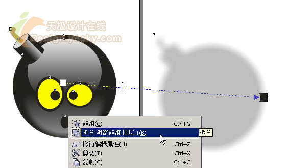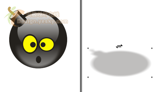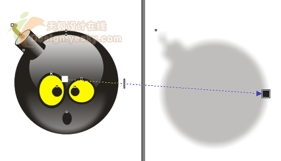 咱們接下來做影子,使用交互式陰影工具從炸彈的中心向外繪制陰影,如圖所示: