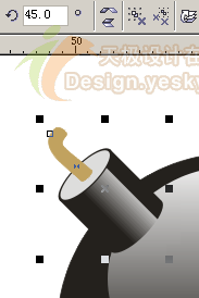 對群組后的引線部分使用挑選工具選中,然后再選項欄里輸入旋轉角度:45,然后把它放到黑色的水晶球左上方,如圖所示: