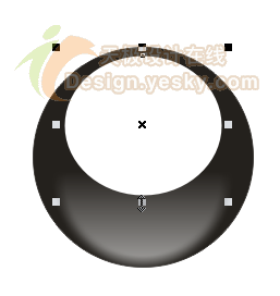 把白色的陰影用挑選工具(也就是箭頭工具)選中,進行縮小變形,按"shift"+"page up"把它放置黑色圓形的上方,使用挑選工具把它放到合適的位置上,最好使用“shfit”連選后面的黑色圓形,然后使用對齊命令“c”。如圖所示: