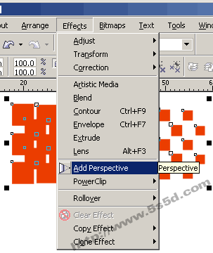 13、選擇effects菜單add perspective(增加透視效果)