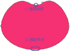 用鼠標(biāo)拖動新增的兩個節(jié)點中間的線段,再用鼠標(biāo)拖動橢圓底部中間的節(jié)點,使橢圓變成心形。